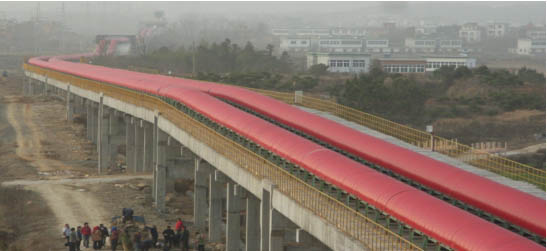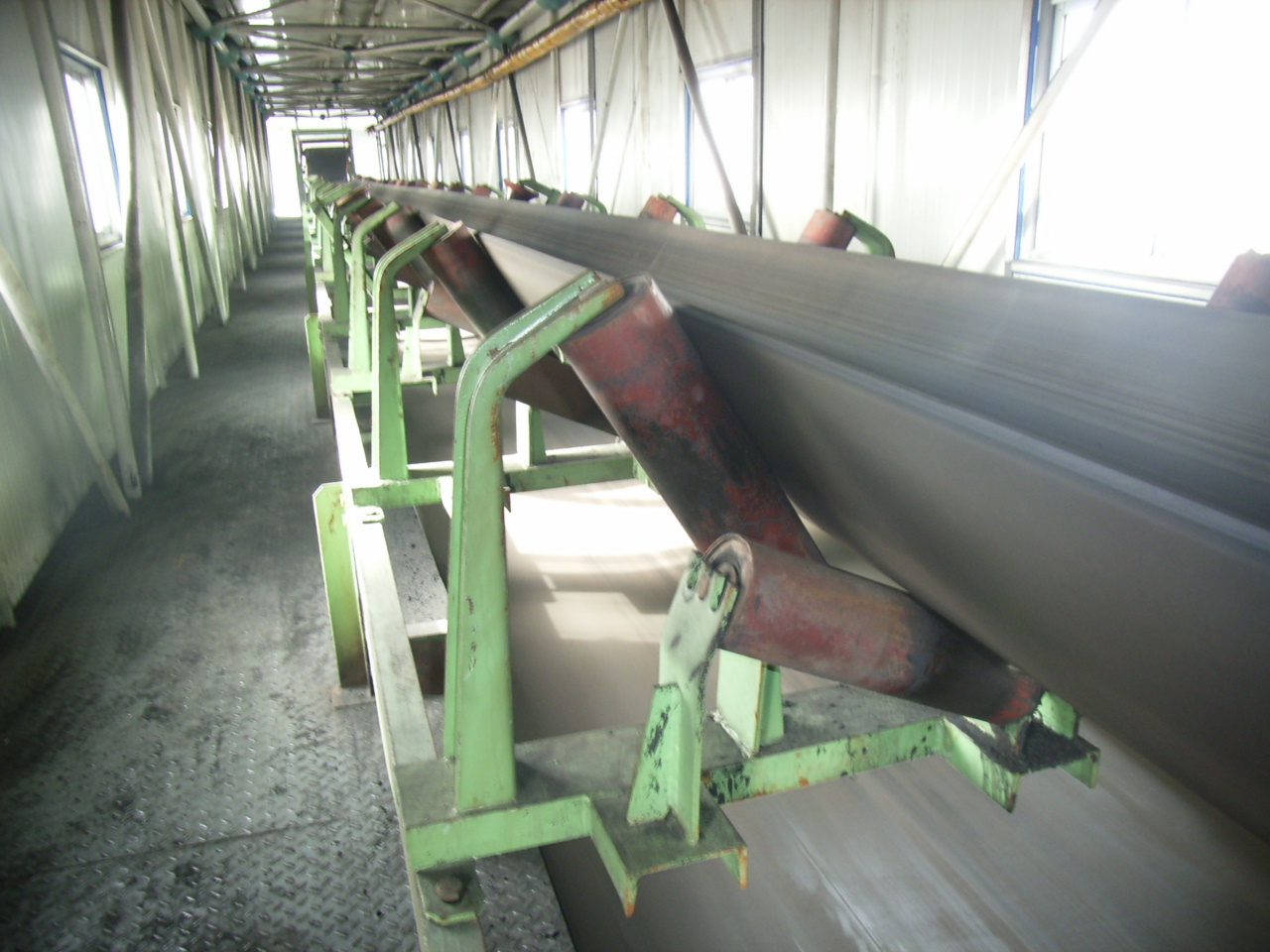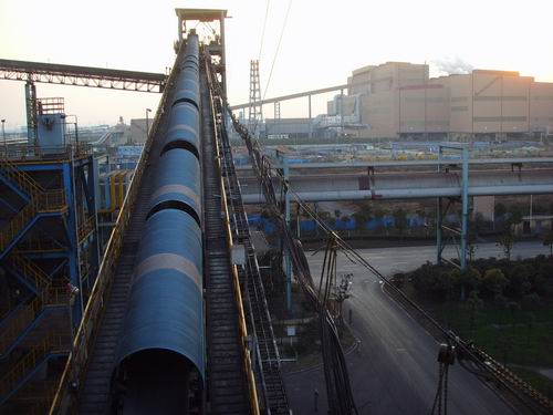 我公司所生產的帶式輸送機,首先是運行可靠,在許多需要連續運行的重要的生產單位,如發電廠煤的輸送,鋼鐵廠和水泥廠散狀物料的輸送,以及港口內船舶裝卸等均采用帶式輸送機。其特點動力消耗低,使用過程中阻力小,對貨物的磨損和破壞均小,生產效率高。不僅在煤廠、鋼鐵廠和礦廠運用輸送機,還在小型隧道內均可以使用,長度短則幾米,長可達10米以上,也可以架設在地面交通混亂和危險地區的上空。如在一點或多點受料.也可以向多點或幾個區段卸料,需要時,還能把各堆不同的物料進行混合。